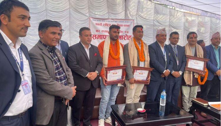 पोखरा । ११औं राष्ट्रिय कर दिवसको अवसरमा आन्तरिक राजस्व कार्यालय पोखराले उत्कृष्ट करदातालाई सम्मान गरेको छ । “स्वेच्छिक सहभागितासहितको फराकिलो करधारः दिगो र उत्पादनमुखी अर्थतन्त्रको आधार” भन्ने नाराका साथ हरेक वर्ष मंसिर १ देखि ७ गतेसम्म कर दिवस मनाईन्छ ।