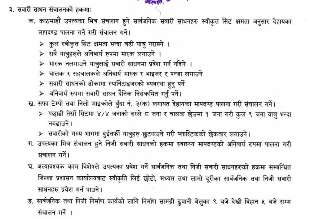 स्वास्थ्य मापदण्ड पालना गरी सिट क्षमता अनुसार नै गाडीहरु सञ्चालन गर्न सकिनेछ ।