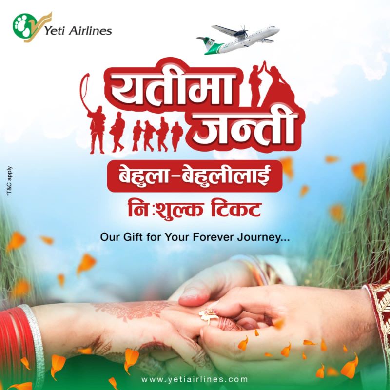यती एअरलाइन्समा जन्ती जाँदा बेहुलाबेहुलीलाई निःशुल्क टिकट