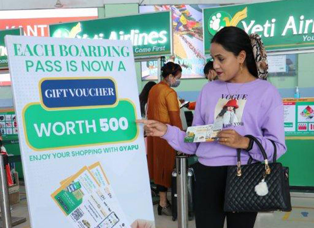 यती एअरलाइन्सको वायुयानमा यात्रा गर्ने यात्रुलाई नेपालको लोकप्रिय ई–कमर्स ग्यापुसँगको सहकार्यमा यो सुविधा उपलब्ध गराउने यती एअरलाइन्सका प्रवक्ता एवम् हवाई सुरक्षा प्रमुख सुदर्शन बर्तौलाले जानकारी दिए । उनका अनुसार जुनसुकै मुल्यको टिकट खरीद गरी यती एअरलाइन्स मार्फत् यात्रा गर्ने प्रत्येक यात्रुले ५ सय रुपैयाँ बराबरको छुट सुविधा प्राप्त गर्नेछन् ।